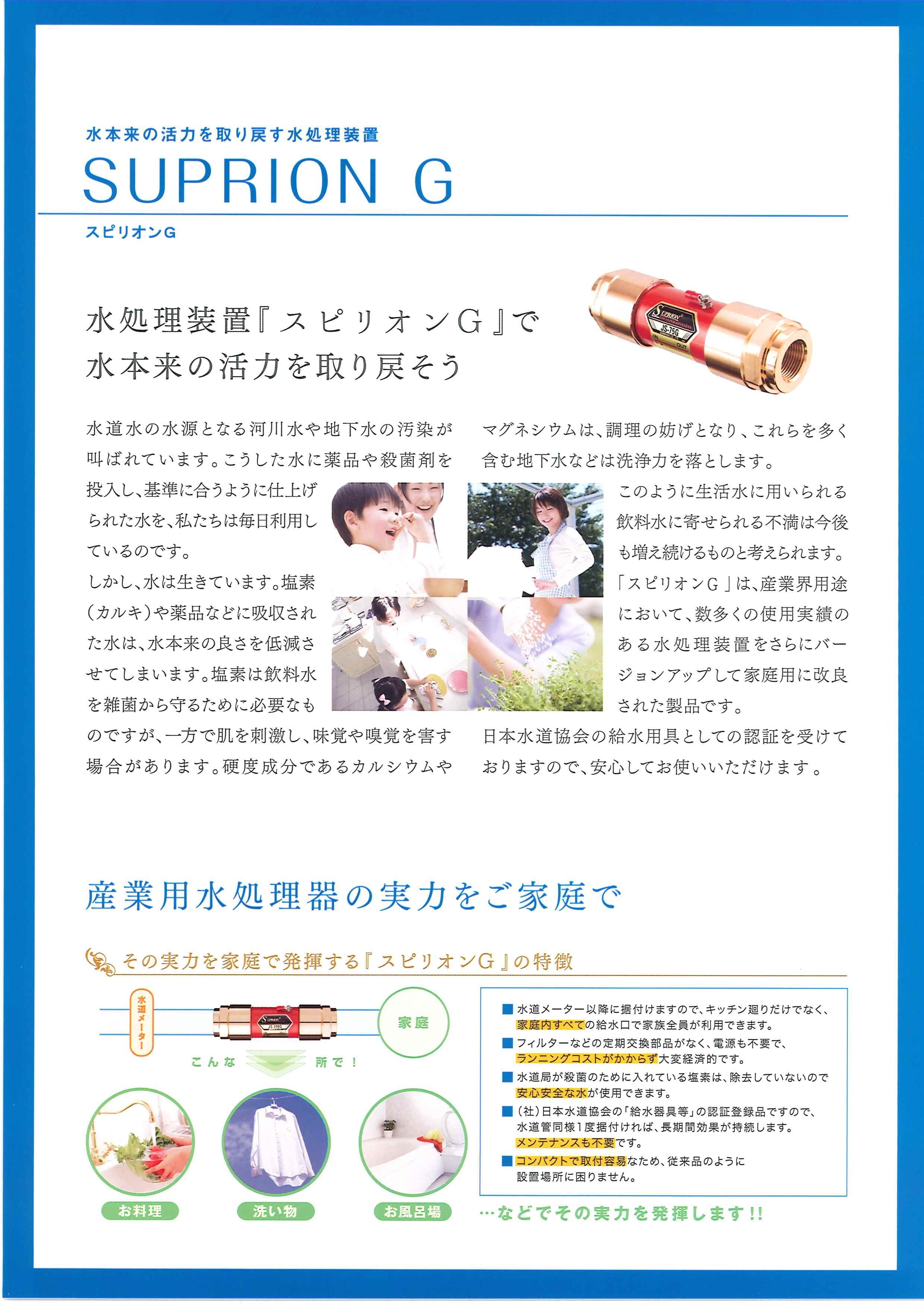 スピリオンGは、産業界用途において、数多くの使用実績のある水処理装置をさらにバージョンアップして家庭用に改良された製品です。