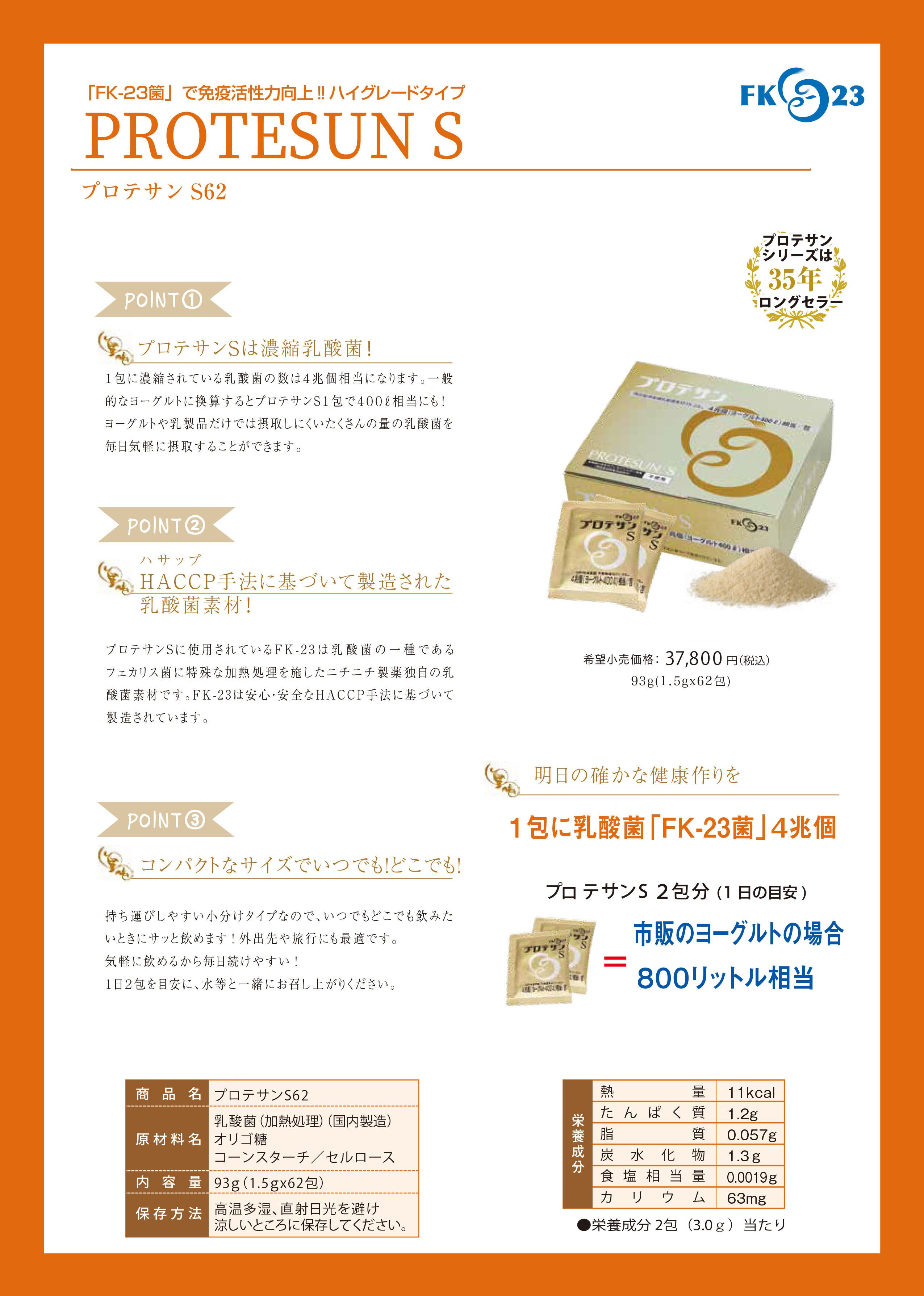 ★お買上先着1名様には「サンプル用プロテサンS62」5包(3048円相当)をプレゼント!